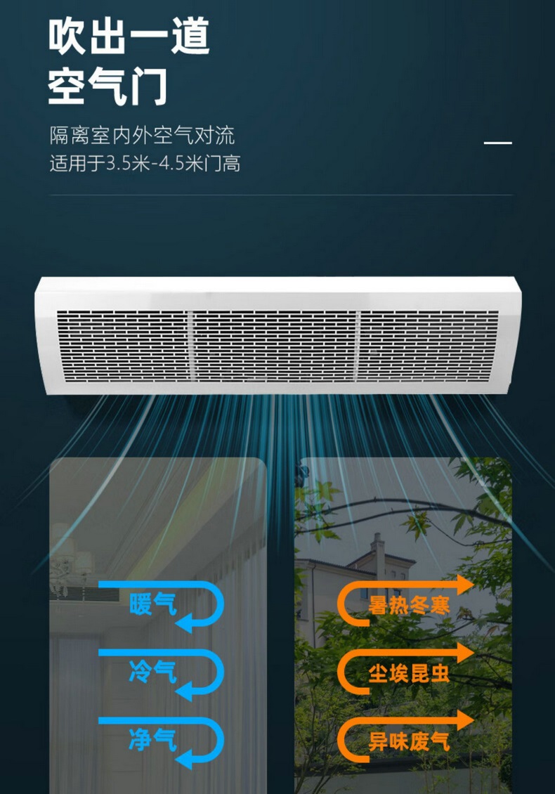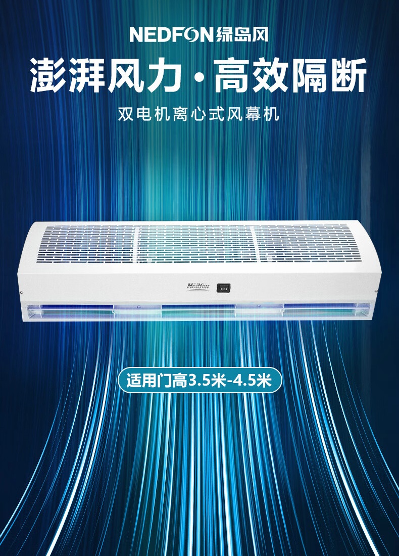 绿岛风风幕机,具有款式新颖,造型美观,风量大,噪音低,安装简单的特点.