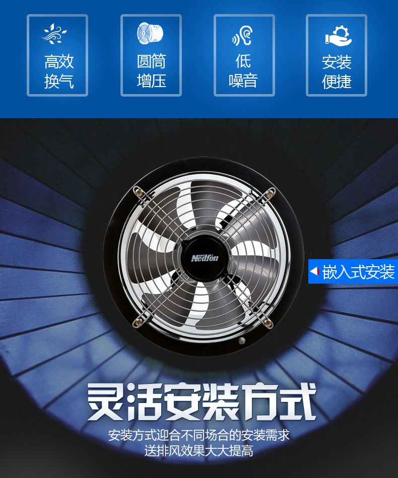 绿岛风全金属嵌入式工业换气扇,具有款式新颖,造型美观,风量大,噪音低,安装简单的特点.