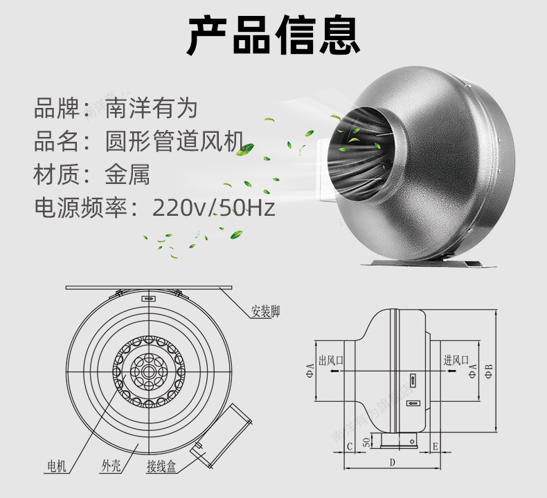 南洋有为迷你型管道风机,具有款式新颖,造型美观,风量大,噪音低,安装简单的特点.
