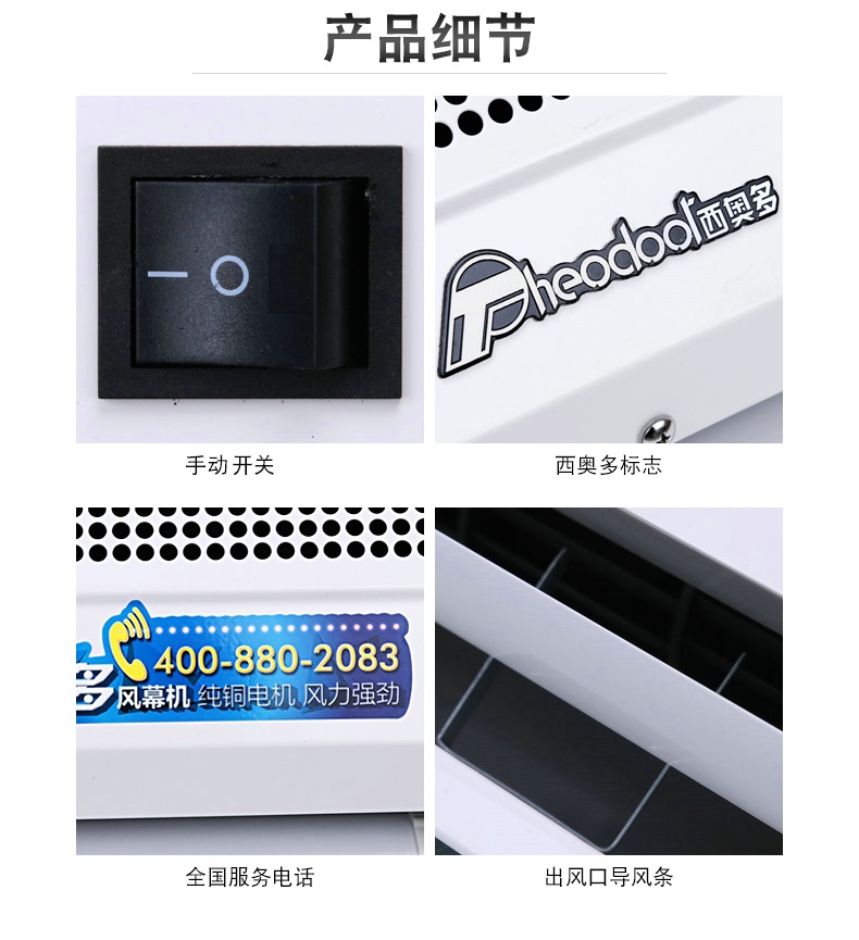西奥多风幕机,具有款式新颖,造型美观,风速高,噪音低,安装简单的特点.