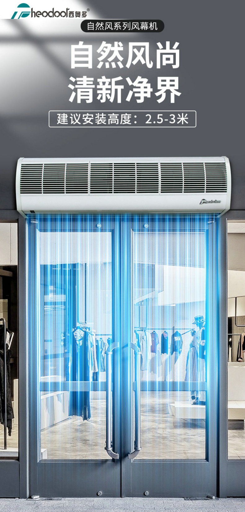 西奥多风幕机,具有款式新颖,造型美观,风速高,噪音低,安装简单的特点.