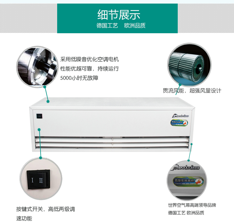 西奥多风幕机,具有款式新颖,造型美观,风速高,噪音低,安装简单的特点