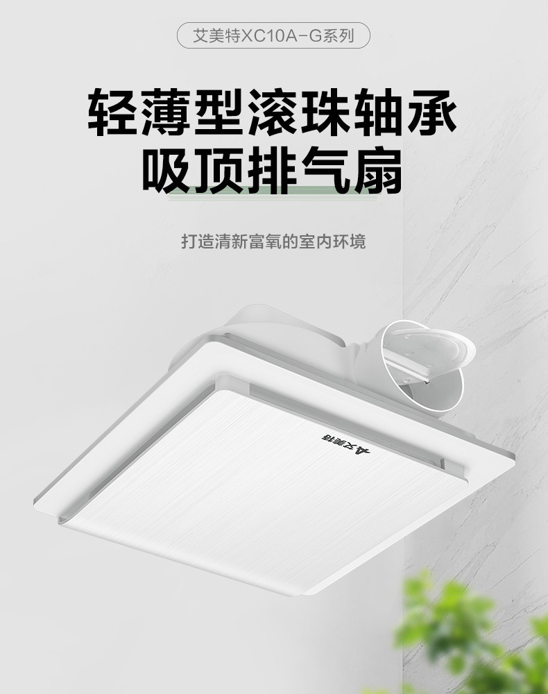 艾美特G系列滚珠轴承天花板换气扇,具有款式新颖,造型美观,风量大,噪音低,运转寿命长,安装简便的特点。