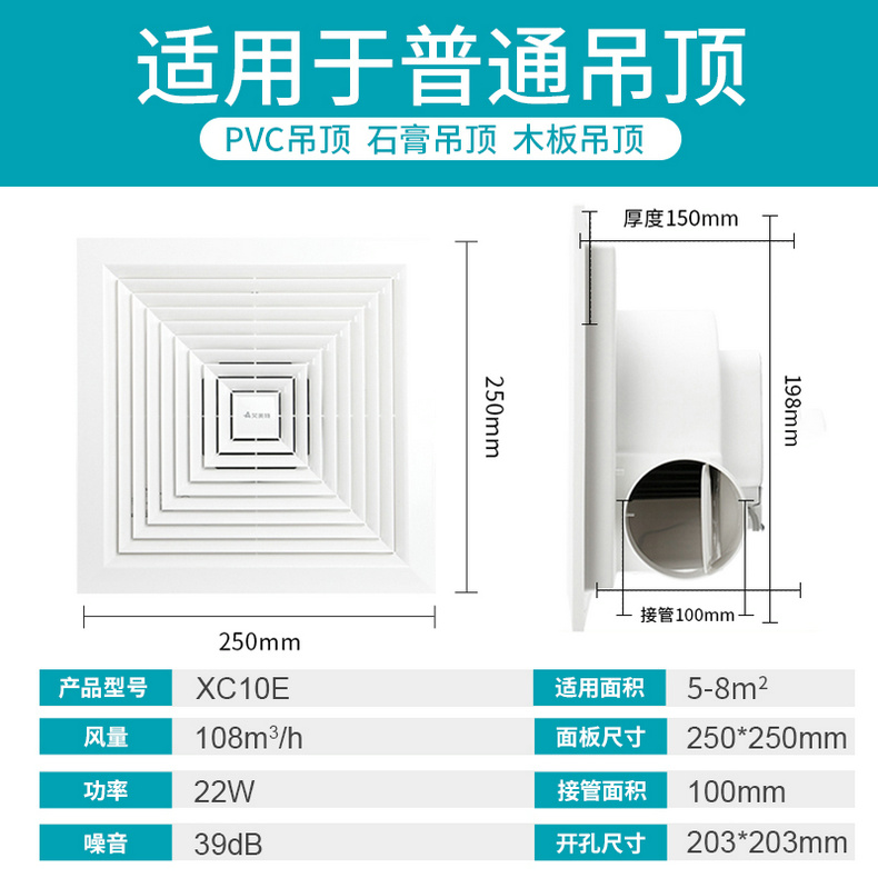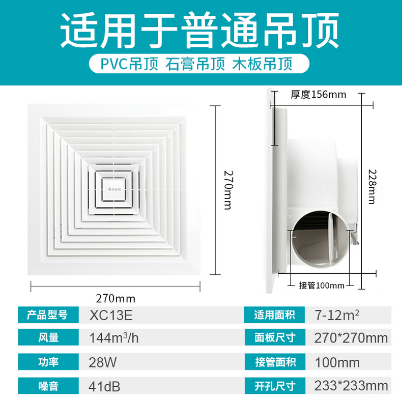 艾美特-E系列管道式换气扇XC10E/XC13E/XC15E