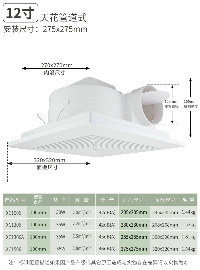 艾美特-管道式换气扇XC1006/XC1306/XC1506