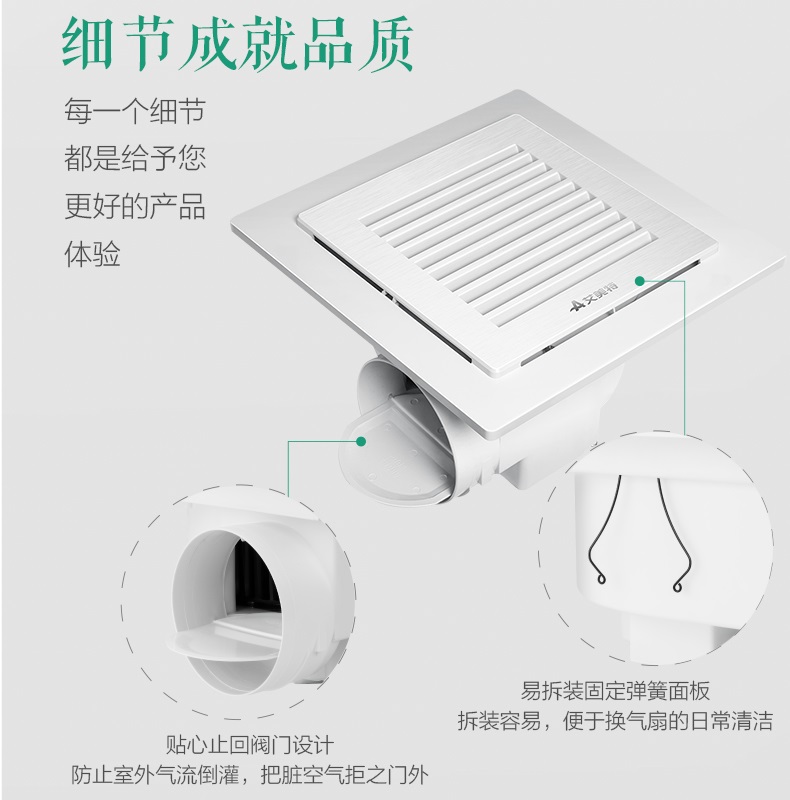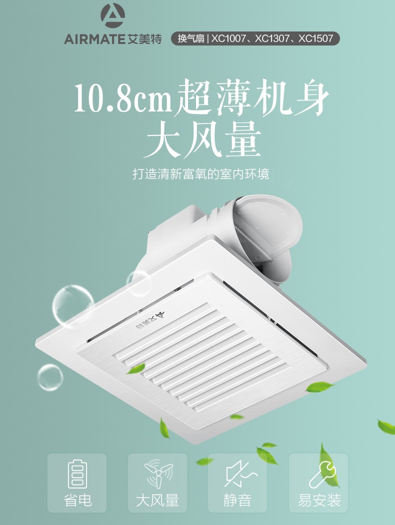 艾美特换气扇,具有款式新颖,造型美观,风量大,噪音低,滚珠电机,使用寿命长。