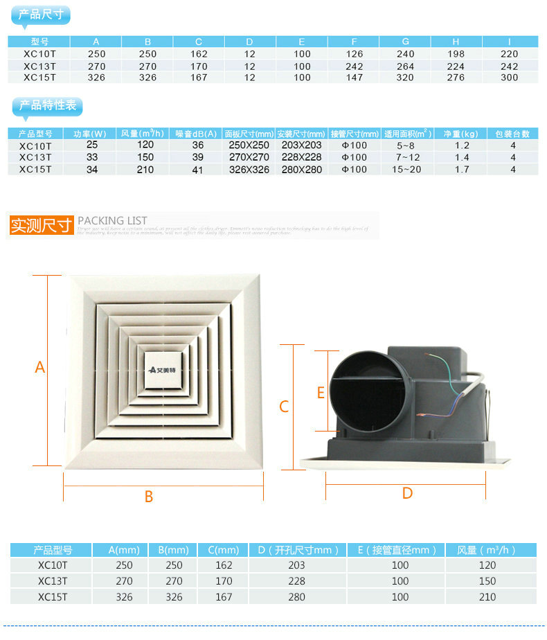 艾美特-管道式换气扇XC10T/XC13T/XC15T