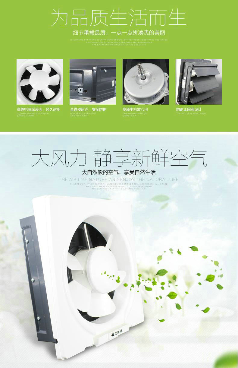 艾美特百叶窗式换气扇,具有款式新颖,造型美观,风量大,噪音低,滚珠电机,使用寿命长。