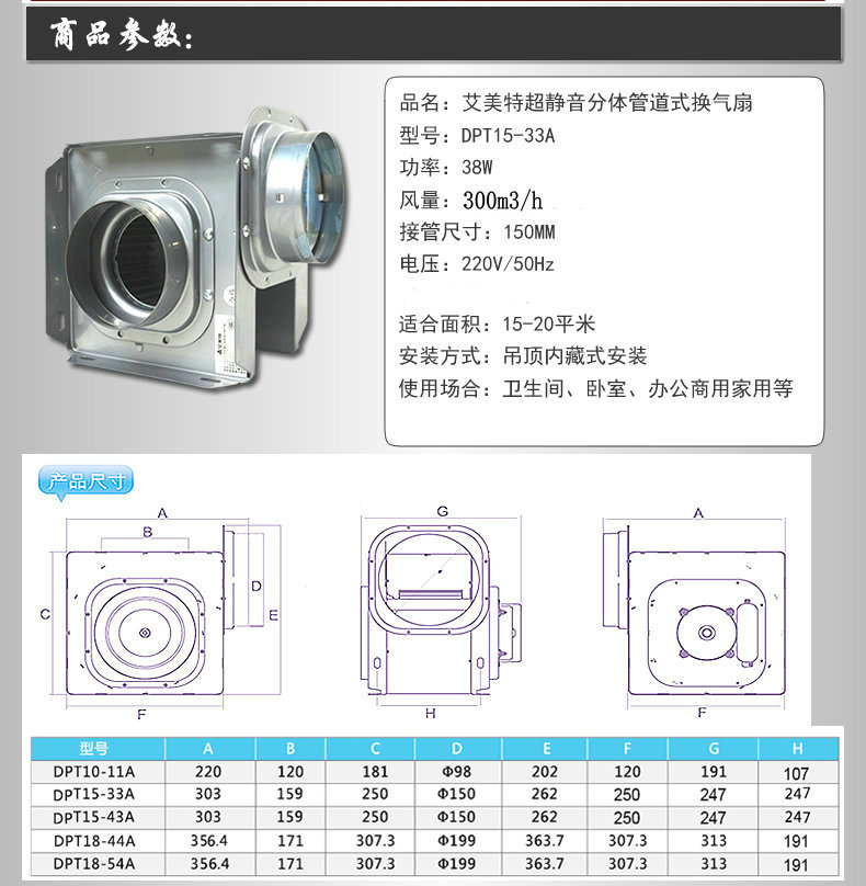 艾美特-分体管道式换气扇