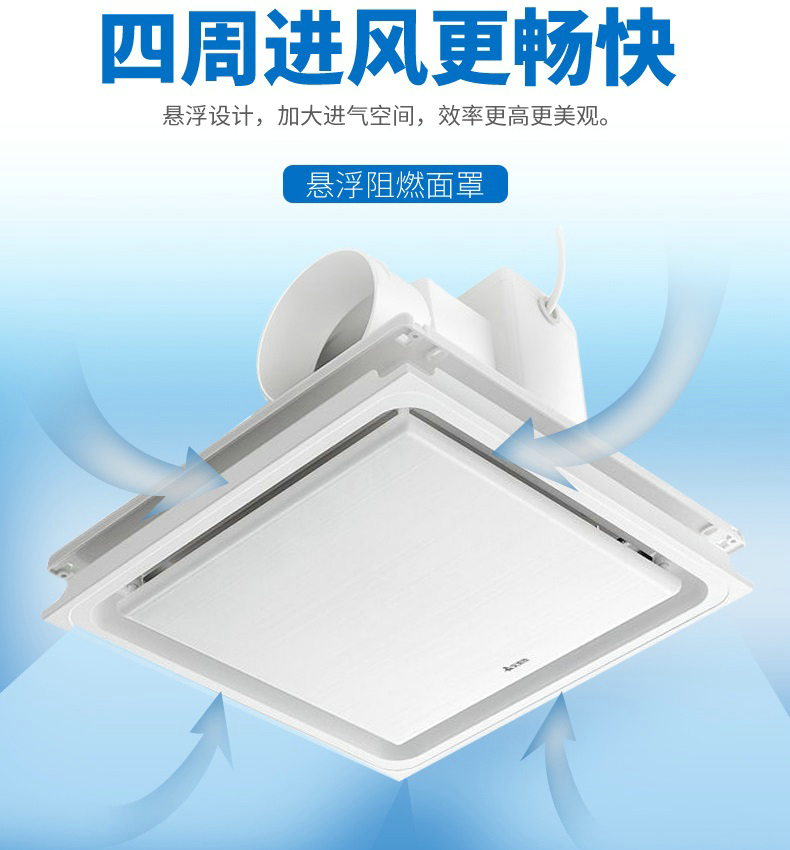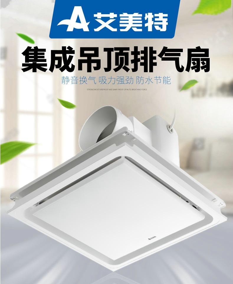 艾美特集成吊顶换气扇,具有款式新颖,造型美观,风量大,噪音低,使用寿命长。