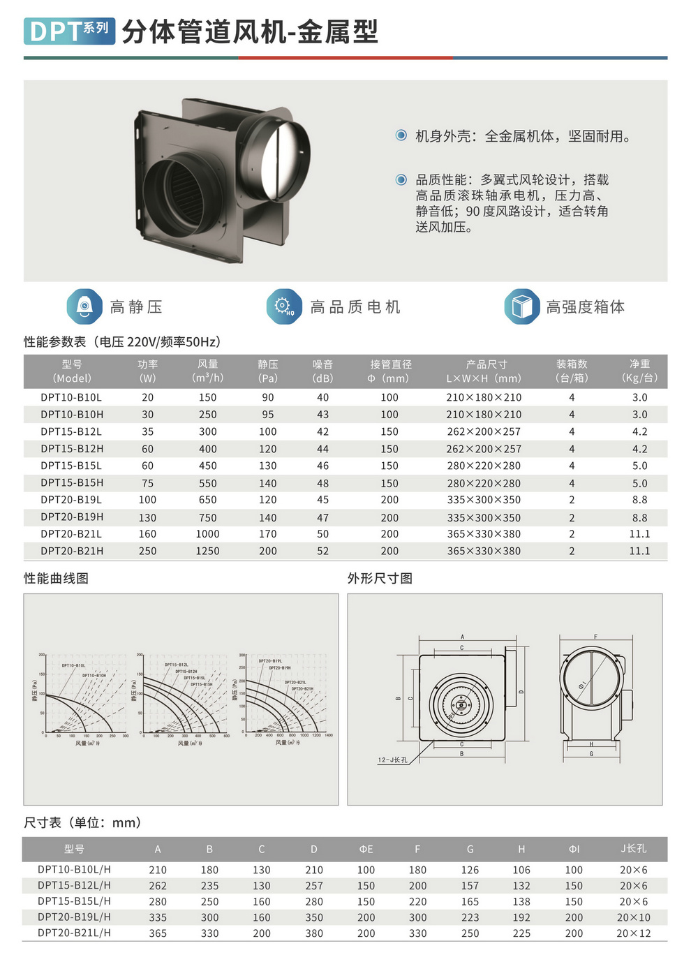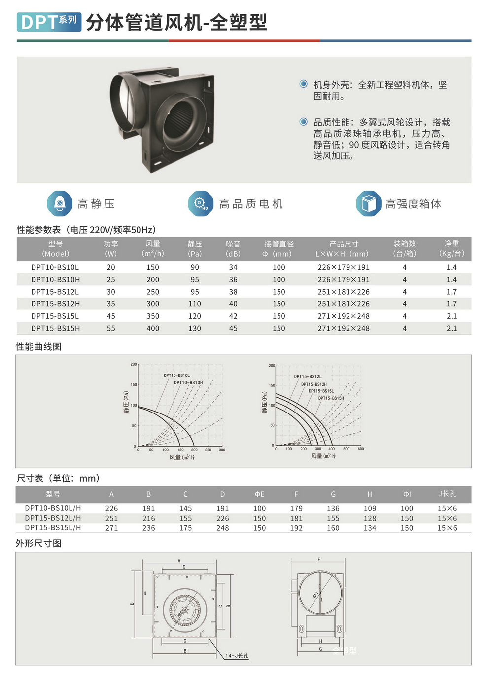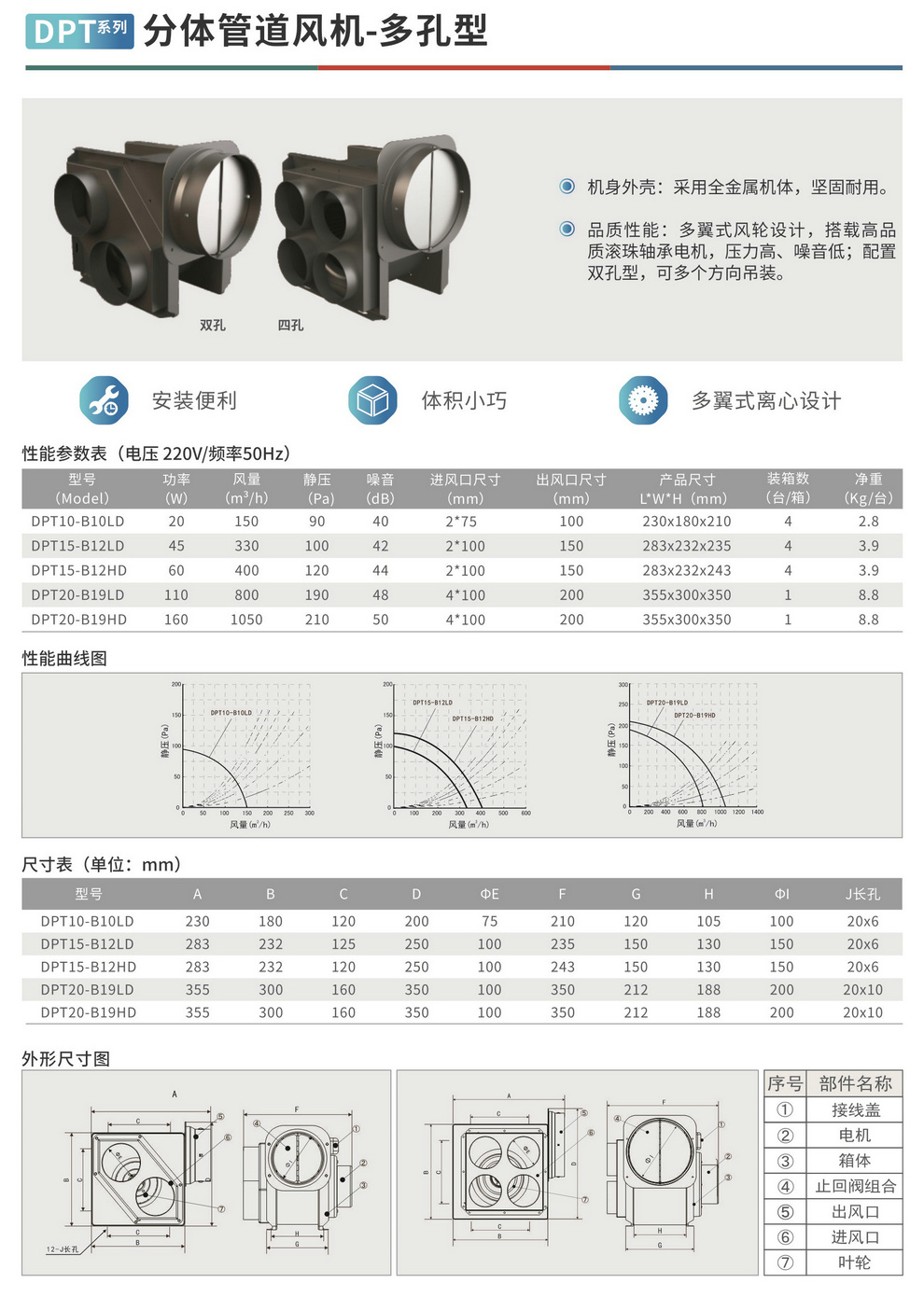 品质性能:多翼式风轮设计,搭载高品质滚珠轴承电机,压力高、静音低;90 度风路设计,适合转角送风加压。