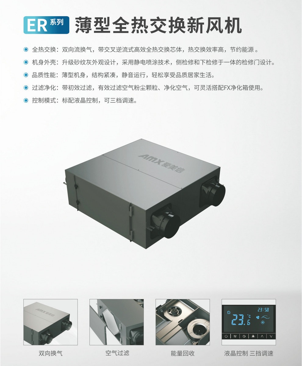 全热交换:双向流换气,带交叉逆流式高效全热交换芯体,热交换效率高,节约能源