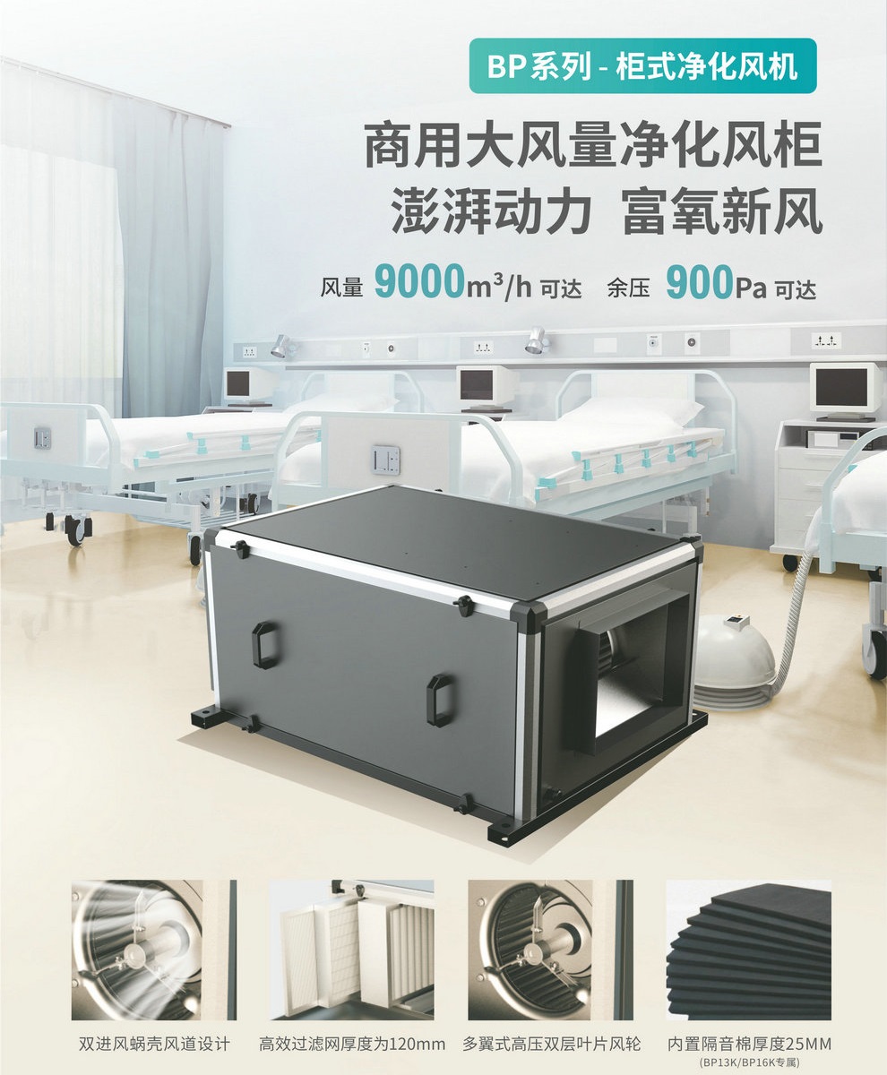 品质性能:搭载双轴外转子纯铜电机及全新设计的多翼式高压双层叶片风轮,配合低阻抗、双进风蜗壳风道设计,保障接管后的风压高、压力损耗低。