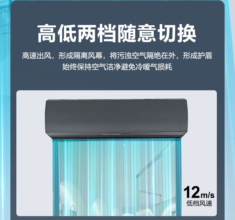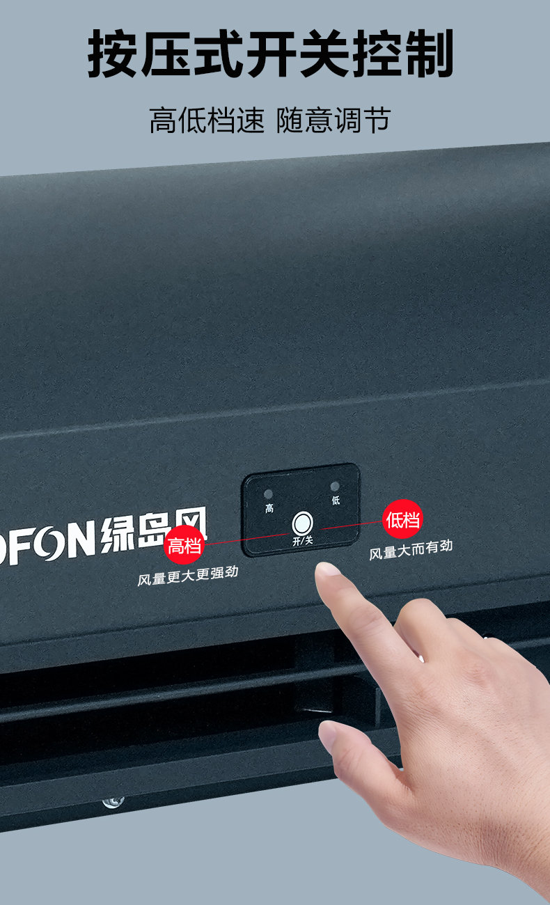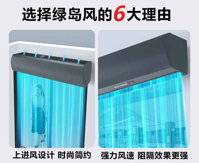 绿岛风离心式风幕机,具有款式新颖,造型美观,风量大,噪音低,安装简单的特点.