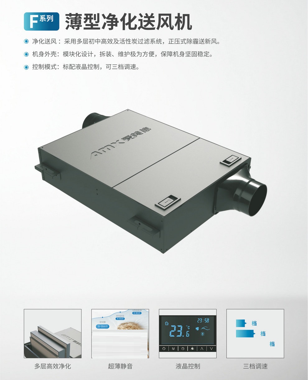 净化送风:采用多层初中高效及活性炭过滤系统,正压式除霾送新风