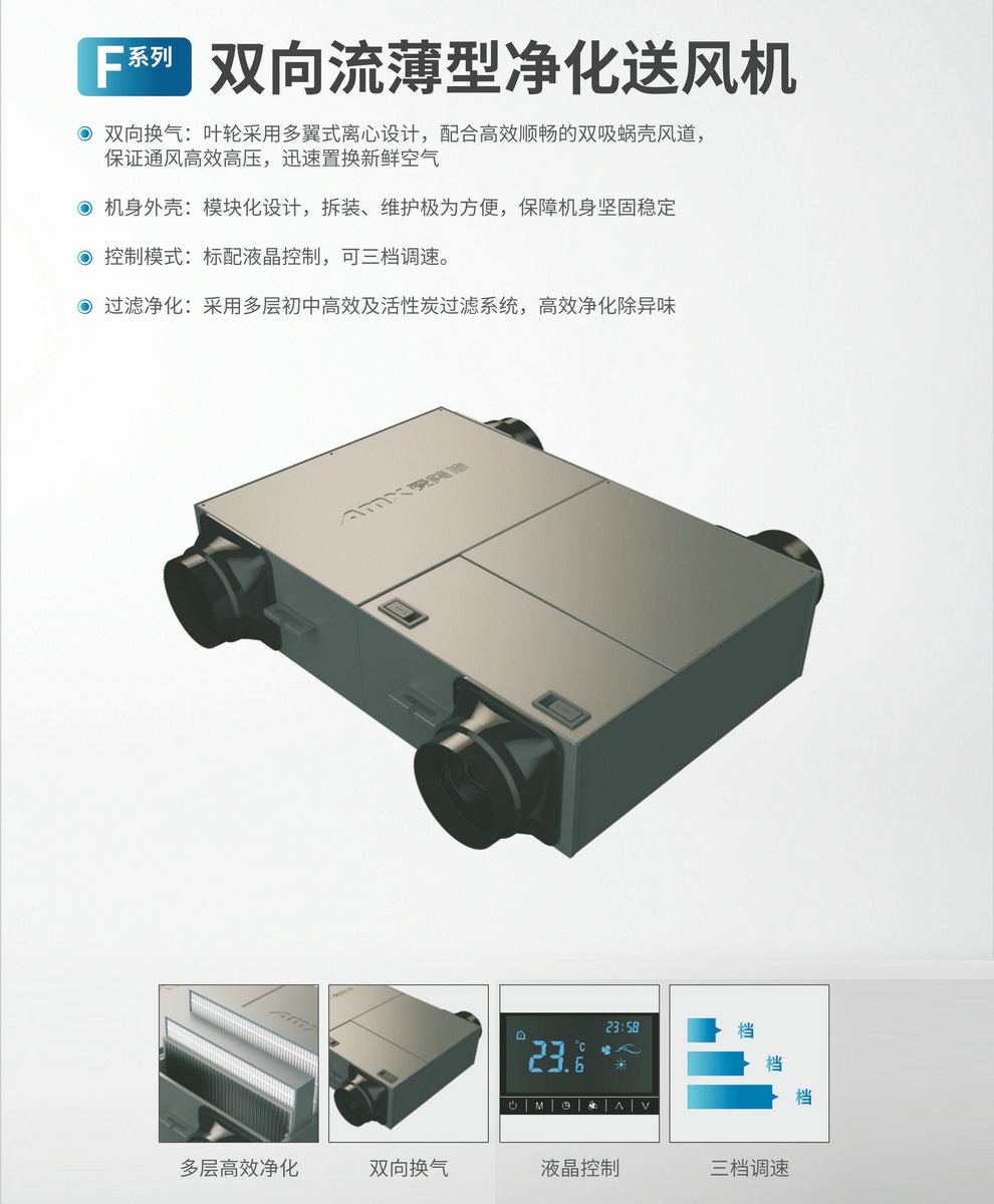 双向换气:叶轮采用多翼式离心设计,配合高效顺畅的双吸蜗壳风道保证通风高效高压,迅速置换新鲜空气