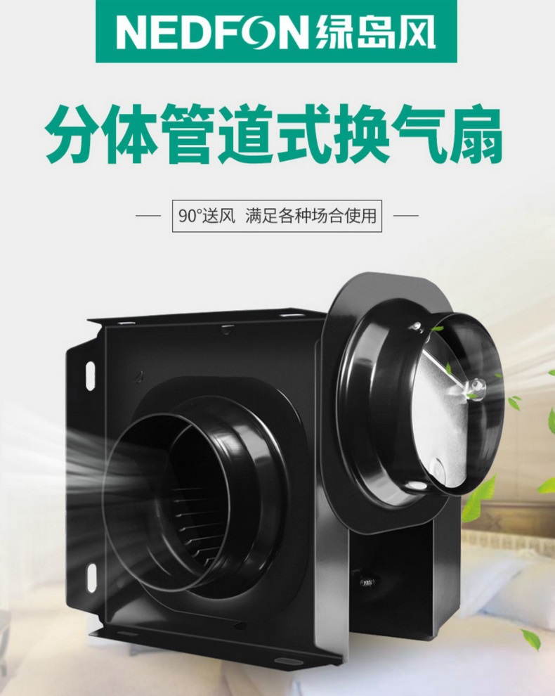 绿岛风分体管道式换气扇,具有款式新颖,造型美观,风量大,噪音低,安装简单的特点.